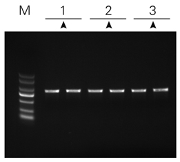![]() | 注解:三個月穩(wěn)定性實驗結(jié)果圖 柑橘內(nèi)參基因GAPDH 1kb擴(kuò)增結(jié)果 RNA使用量為50 ng 1:4℃保存 2:37℃保存 3:-20℃保存 M:莊盟DL2000(3μl點樣) |