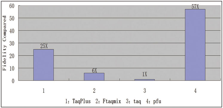 保真性高于普通Taq DNA聚合酶25倍。( LacZ測定法 )