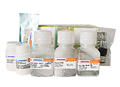 本試劑盒用于EGY48-pLacZi酵母雜交系統(tǒng)中的LacZ報告基因的檢測。當有互作發(fā)生,LacZ報告基因表達,生成β-半乳糖苷酶,將X-Gal切割成半乳糖和深藍色的底物5-溴-4氯靛藍。
