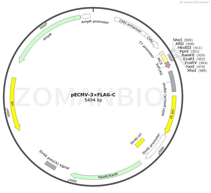 產(chǎn)品名稱:pCMV-T7-MCS-3×FLAG-Neo(別名pCDNA3.1-3×FLAG-C;pECMV-3×FLAG-C)質(zhì)粒