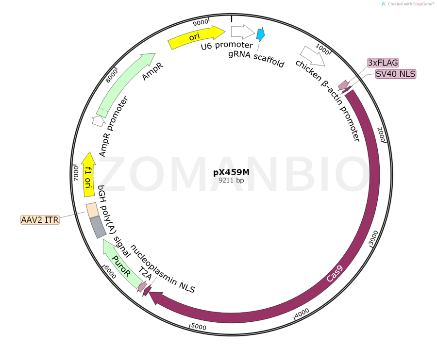 pX459M是一個哺乳細胞基因編輯質(zhì)粒。