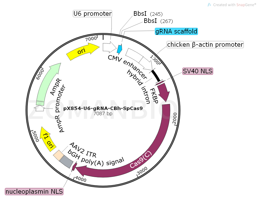 產(chǎn)品名稱:pX854-U6-gRNA-CBh-SpCas9