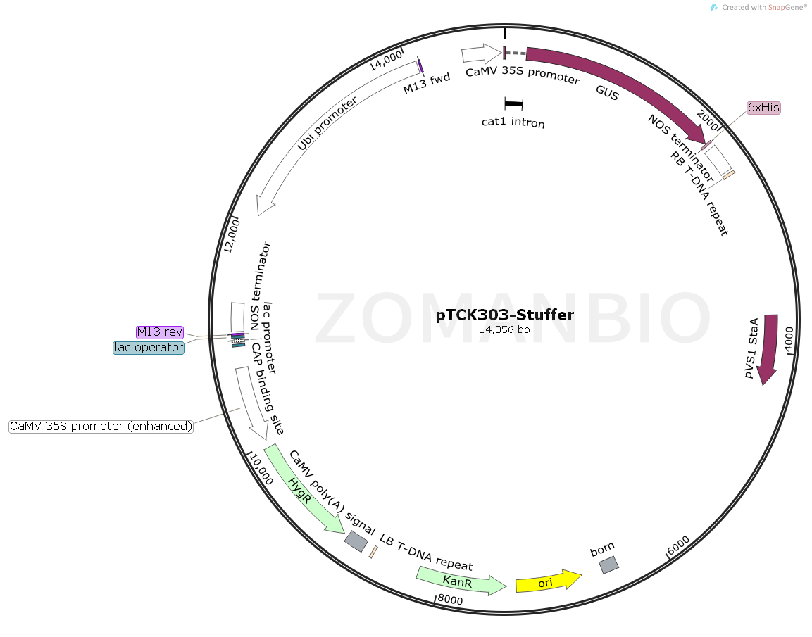 質(zhì)粒序列請下載:ZK916pTCK303-Stuffer植物干擾質(zhì)粒.txt