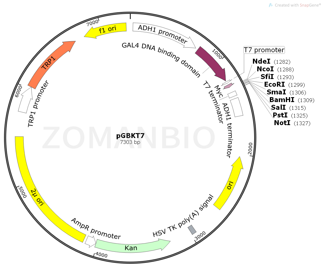 產(chǎn)品名稱:pGBKT7 (別名 pGBKT7-BD)