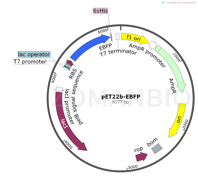 質(zhì)粒序列請(qǐng)下載:ZK1636 pET22b-EBFP大腸熒光質(zhì)粒.txt