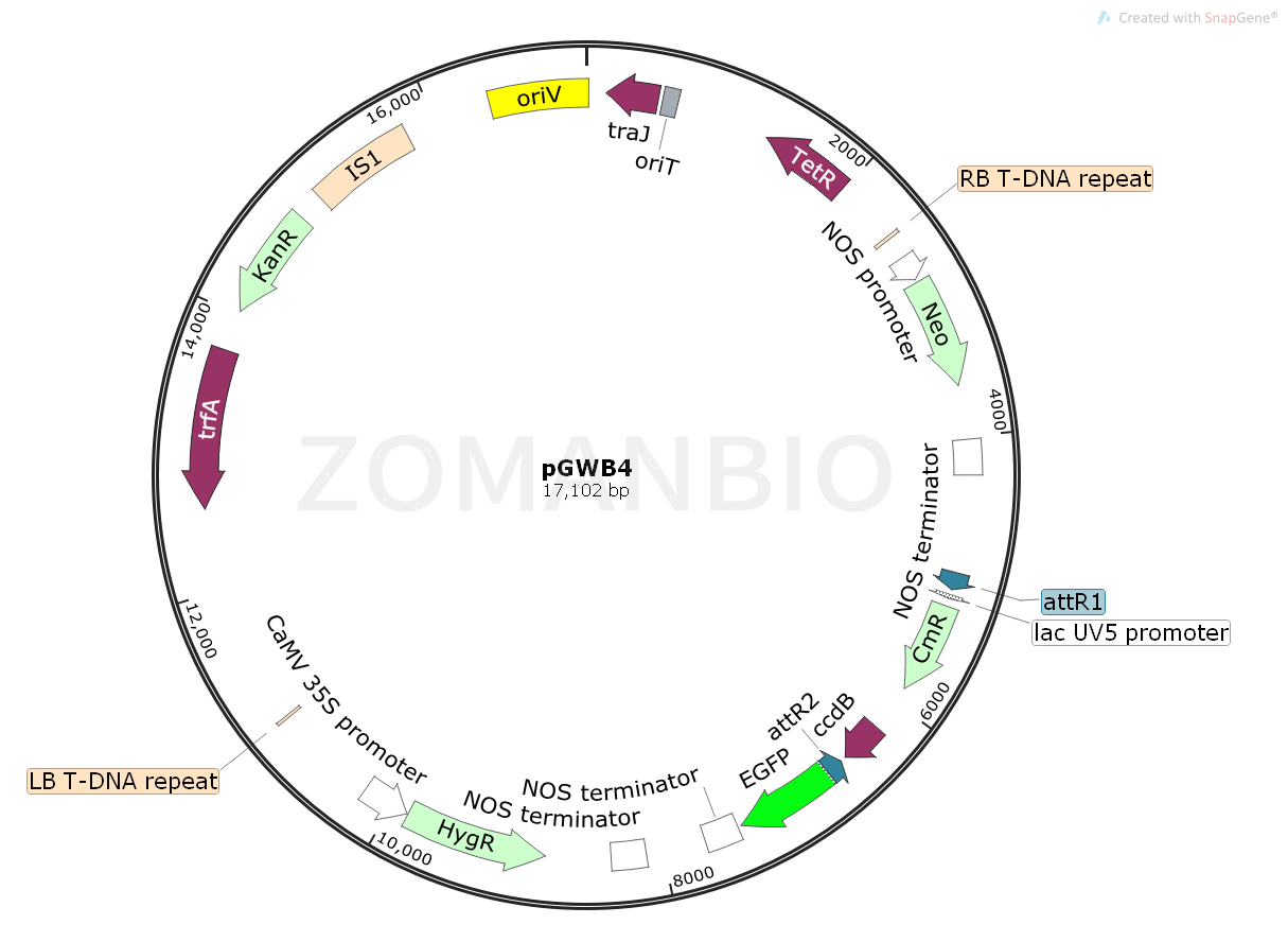 pGWB4是一個(gè)植物表達(dá)質(zhì)粒。