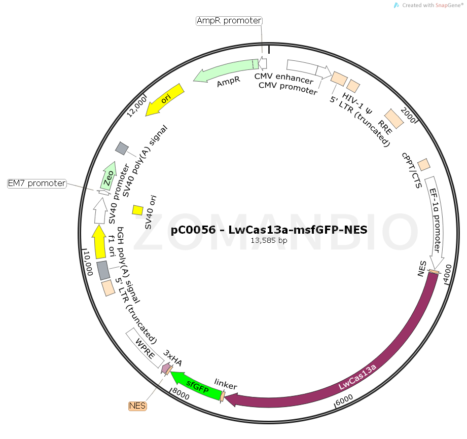 pC0056 - LwCas13a-msfGFP-NES哺乳編輯質(zhì)粒。