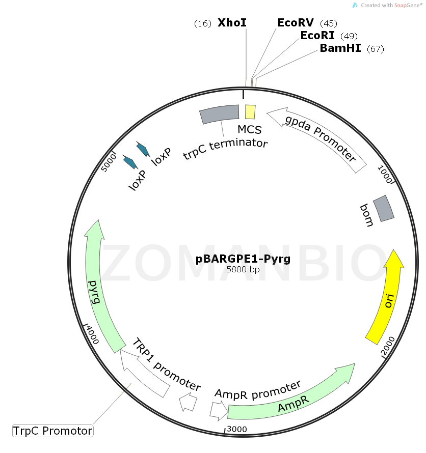 pBARGPE1-PyrG真菌表達(dá)質(zhì)粒