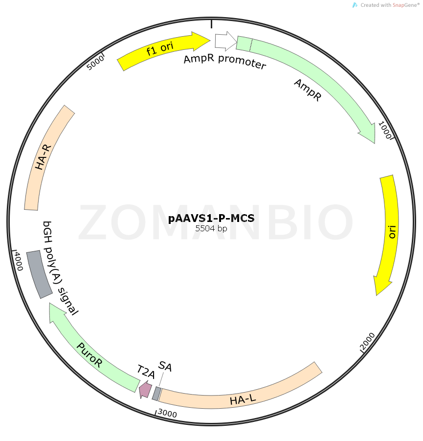 質(zhì)粒序列請(qǐng)下載:ZK2091 pAAVS1-P-MCS哺乳同源臂敲入質(zhì)粒.txt
