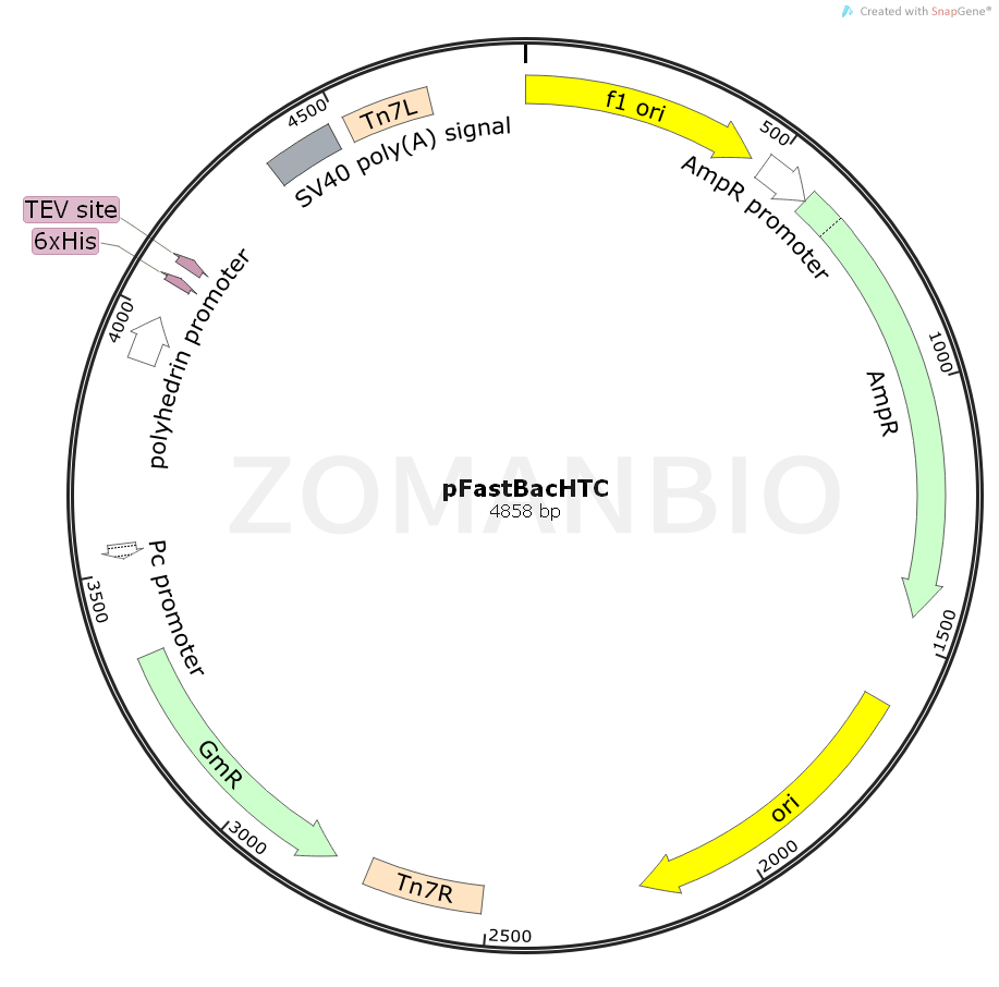 質(zhì)粒序列請(qǐng)下載:ZK2327pFastBacHTC昆蟲胞內(nèi)質(zhì)粒.txt